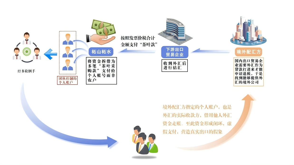 近期,国家税务总局宁德市税务局第三稽查局联合公安经侦部门依法查处了柘荣县柘山柘水茶业有限公司虚开增值税发票团伙案件。经查,在没有真实业务交易情况下,以许守龙为首的犯罪团伙操控了柘荣县柘山柘水茶业有限公司,为自己虚开农产品收购发票,为他人虚开增值税专用发票,骗取出口退税,涉及增值税普通发票2.15万份、发票金额1.95亿元,增值税专用发票1831份、发票金额1.77亿元。2024年8月,国家税务总局宁德市税务局第三稽查局依法对该公司开具的增值税发票定性虚开。2025年7月,柘荣县人民法院已对该案作出一审判决,依法追究涉案当事人相应刑事责任。 违反行业经营常规露端倪 前期,国家税务总局宁德市税务局通过税收大数据分析发现,全市收购“茶”相关农产品的发票金额占GDP比重畸高,行业企业涉嫌虚开。税务部门随即对辖区内的茶企开展案头核查,系统数据显示柘荣县柘山柘水茶业有限公司存在以下疑点:相关年度用电量增长60%,产量反而缩减53%,与常理不符;从个税申报系统调查收购对象发现,这些被列为“茶农”的销售方实为其他县市机械制造、混凝土、建筑工程类企业的从业人员,有相当一部分人员的身份信息与农业生产者特征不符;与下游企业存在“六员”重叠、亲属交叉持股及手机号码重复绑定等异常关联。种种迹象不符合经营常规。 据此,宁德市税务局第三稽查局依法向公安机关移送线索并提请联合办案。综合银行流水及其他相关证据,锁定许守龙、许小明、郭金寿、陈桂清、王明明、曹家辉6名犯罪嫌疑人。 实地查验掌握关键证据 为进一步查明情况,税务部门配合公安部门开展收网行动,依法逮捕上述6人。 同时,检查人员实地查看企业,发现生产机器闲置,厂房内空无一人。企业的发票、账簿以及申报纳税情况也显示,该公司没有委托加工,没有库存商品,更没有生产经营迹象。在此情况下,该公司却申报1.8亿元销售收入。 针对“茶农”身份异常情况,检查人员依法询问其中交易频次高、金额大的“茶农”。取证结果显示,这些人员中,有的是不具备茶叶种植生产能力的非农户;有的则明确表示从未向该企业销售过茶叶。由此证实,企业在收购发票上填列的销售方身份信息严重失实,相关茶叶收购业务的真实性存在疑点。 根据《中华人民共和国发票管理办法》(国务院令第587号)及《农业产品征税范围注释》(财税字〔1995〕52号),农产品收购发票仅适用于向农业生产者个人收购其自产的免税农业产品;且开具发票上应准确记录出售人的姓名、详细地址,票面金额与支付的货款金额必须相符。该公司收购对象非农户,金额、数量和单价也与实际情况严重不符,不符合农产品收购发票开具规定,涉嫌冒用个人身份信息为自己虚开农产品收购发票。 公安机关破获证据及资金流分析结果则显示,该团伙控制的下游公司收到境外公司提供的外汇资金后,以货款名义打给柘山柘水公司,由其拆解为多笔“茶叶采购款”,这些款项绝大部分转入许小明、陈桂清等个人账户,再分散转给数百个陌生账户而非发票上备注的“茶农”。经多轮倒手后,货款最终返还至提供外汇资金的境外公司指定的个人账户,形成虚假支付,资金回流率高达90%,营造了资金闭环“假象”。一个虚开团伙的轮廓逐渐被勾勒出来。